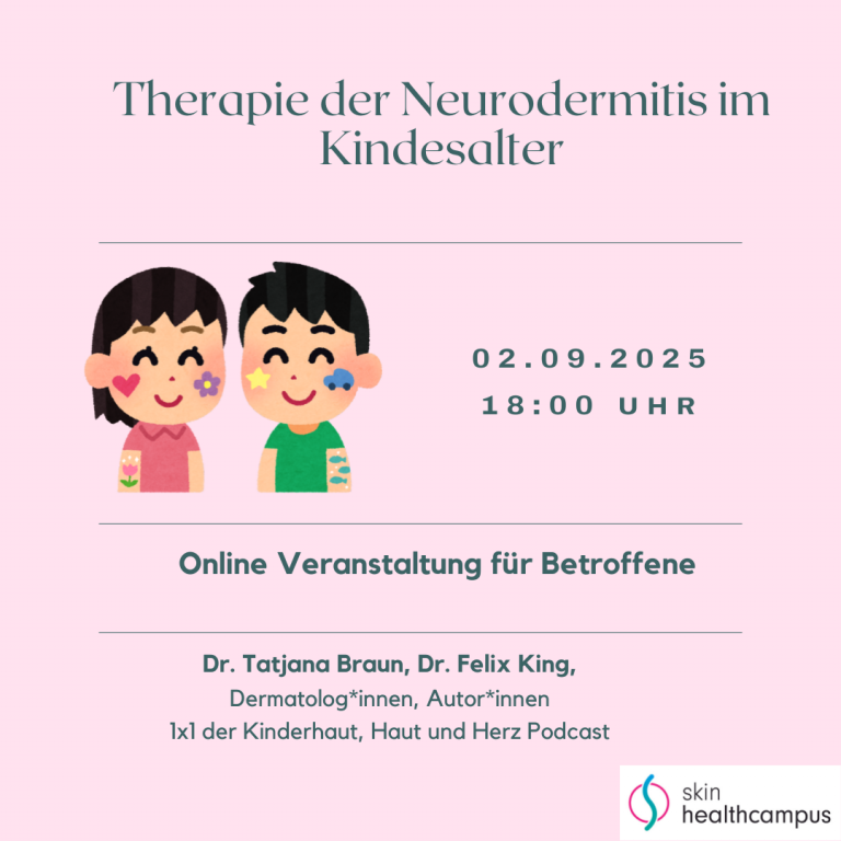 Neurodermitis (Atopische Dermatitis) im Kindesalter – Ursachen, Symptome und Therapie Wir freuen uns sehr, dass wir am 02.09.2025 Frau Dr. Tatjana Braun und Dr. Felix King in unserer Online-Fortbildung begrüßen durften. Die beiden sind erfahrene Dermatolog:innen mit Schwerpunkt im Bereich der Kinderdermatologie. Gemeinsam haben sie das Buch „1×1 der Kinderhaut“ veröffentlicht und informieren in ihrem eigenen […]
